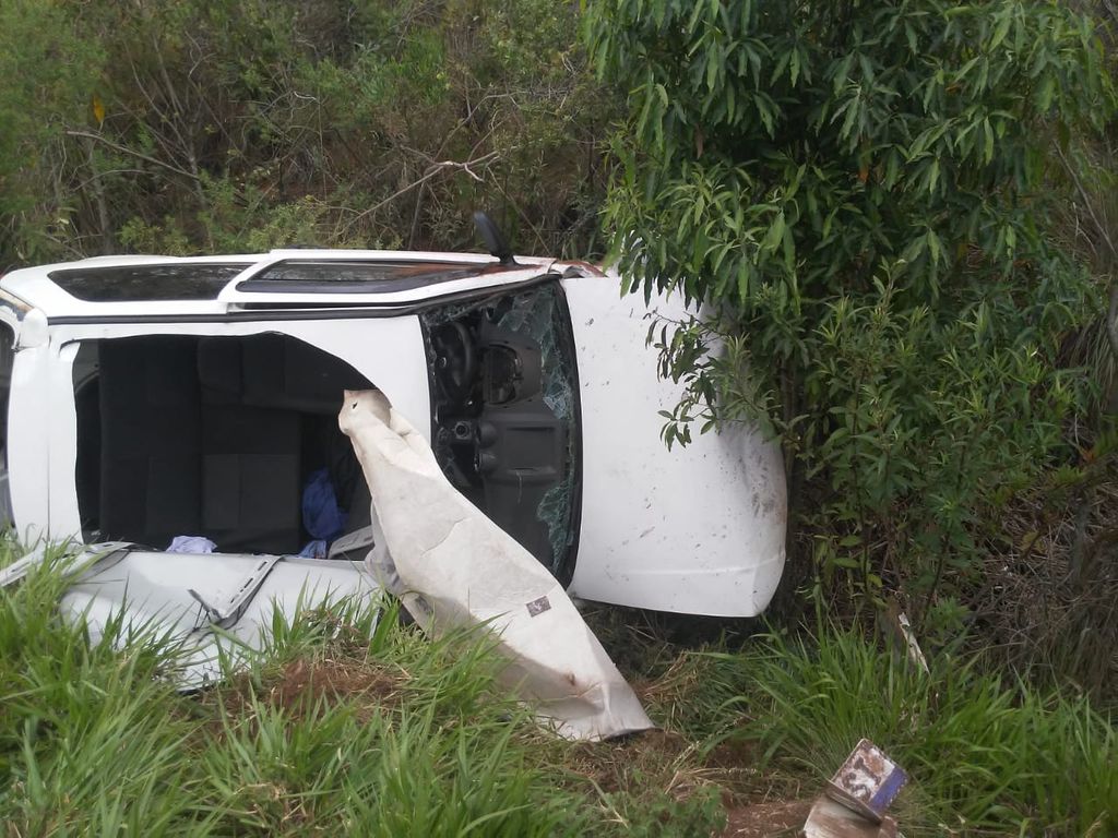 Foi uma saída de pista de um automóvel Gol, que parou no acostamento após capotar.