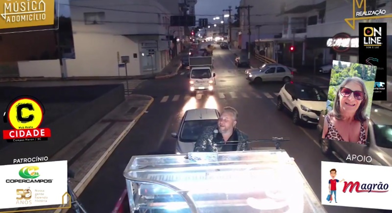 Em tempos de pandemia um show reunindo inúmeras pessoas no mesmo espaço é inviável. Mas, nem por isso, Campos Novos deixou de ter uma comemoração à altura para celebrar seus 140 anos. A Web Rádio Cidade e a Copercampos realizaram nesta segunda-feira (29), o show “Música a Domicílio” evento que seguiu todos os protocolos de segurança visando a prevenção do coronavírus e levou emoção pelas ruas do município.