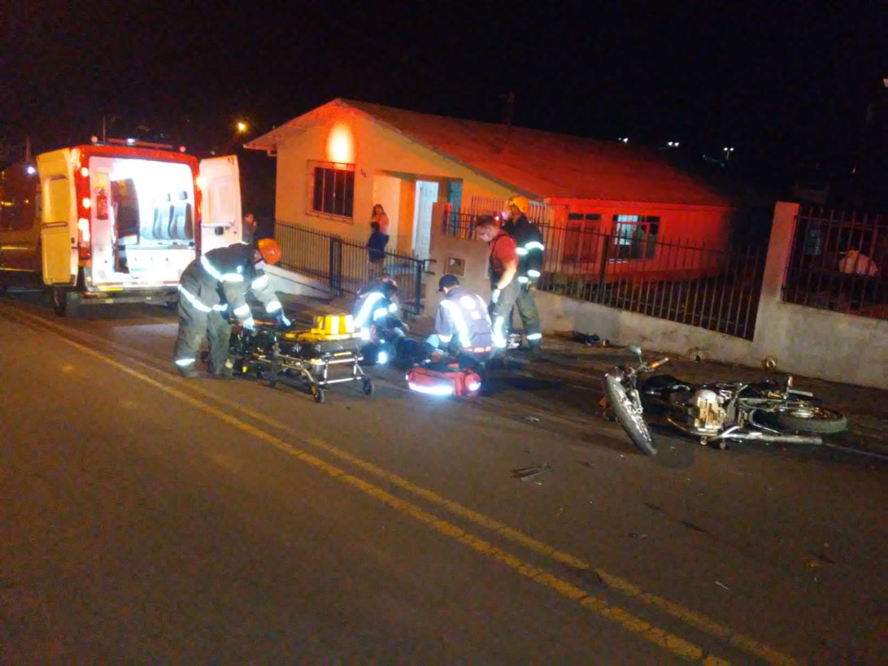 O trem de socorro de Campos Novos deslocou-se na noite de terça-feira (30) para a rua Herval D’Oeste, bairro Aparecida, para atendimento de colisão entre carro e motocicleta. Envolveram-se um veículo Gol de Campos Novos-SC e uma motocicleta Honda Fan 150 ( placa modelo Mercosul).