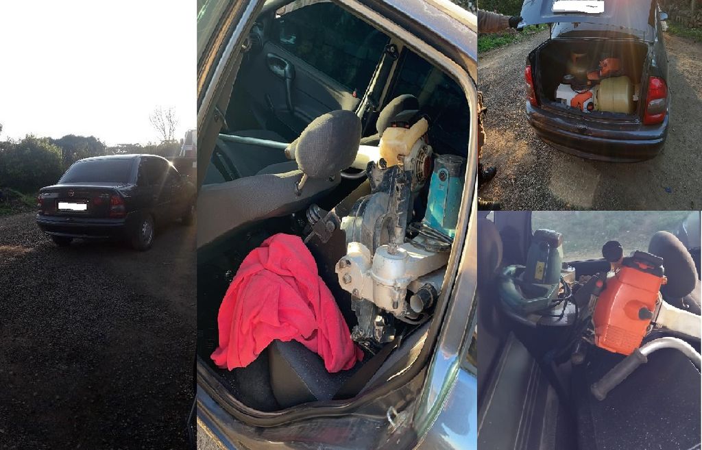 O veículo estava carregado com vários produtos de furto, entre os objetos, três botijões de gás, um motosserra, uma roçadeira, uma caixa de som, uma caixa de ferramenta, três serras elétricas, uma TV e um lava jato.