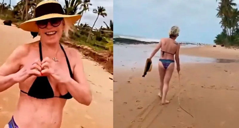 Na segunda-feira (26), a apresentadora compartilhou um vídeo com os fãs nas redes sociais em que aparece de biquíni, óculos escuros e chapéu andando à beira-mar. “Meu amor pra vocês!! Férias mode on", legendou a publicação.