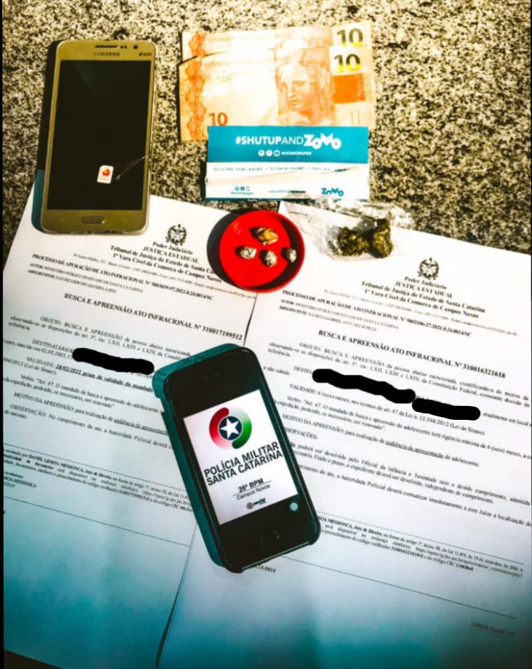 A PM também abordou diversas pessoas nas ruas e muitos veículos, o que resultou no cumprimento de um mandado de busca e apreensão de um adolescente, que será submetido a medida socioeducativa de internação, e com outro adolescente foi encontrada pequena quantidade de droga preparada para a venda, sendo também encaminhado à Delegacia para responder por tráfico de drogas.