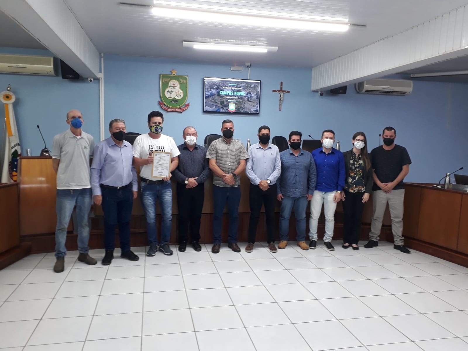 O empresário Camponovense Reginaldo Castanhel recebeu uma Moção de Aplauso da Câmara de Vereadores de Campos Novos. A Homenagem foi prestada por sua contribuição com o esporte e no âmbito social do município. Moção foi indicada pelo vereador Rogerio Cordeiro.