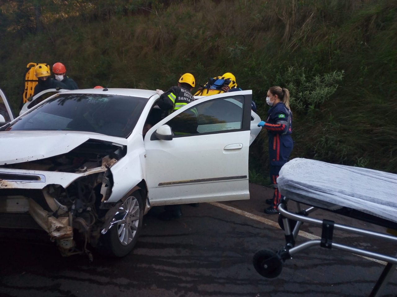 O trem de socorro foi acionado para atendimento de acidente de trânsito, na BR-282 no sentido Joaçaba, próximo ao antigo posto da PRF. No local constava veículo Cobalt, de cor branca, modelo Mercosul (BR), que rodou e bateu no barranco com quatro ocupantes. Ainda dentro do veículo se encontravam 2 vítimas sendo: uma jovem de 19 anos, que havia saído do veículo mas se encontrava no banco dianteiro. Ela foi imobilizada e conduzida pela equipe da USB-04 (SAMU), um jovem de 20 anos, encontrava-se no banco traseiro, com possível traumatismo craniano, sendo imobilizado e conduzido pela guarnição do ASU-468. O condutor do veículo, um homem de 31 anos, deambulava pela cena, apresentando dores na extensão da coluna sendo imobilizado e transportado também pelo ASU-468 até a unidade hospitalar de Campos Novos. A última vítima, mulher (idade não informada) que nada sofreu. A cena ficou aos cuidados da Polícia Rodoviária Federal.