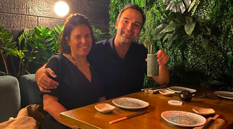 No último domingo (31/07), o apresentador Tadeu Schamidt (48) aproveitou para levar a esposa, Ana Cristina para jantar fora.