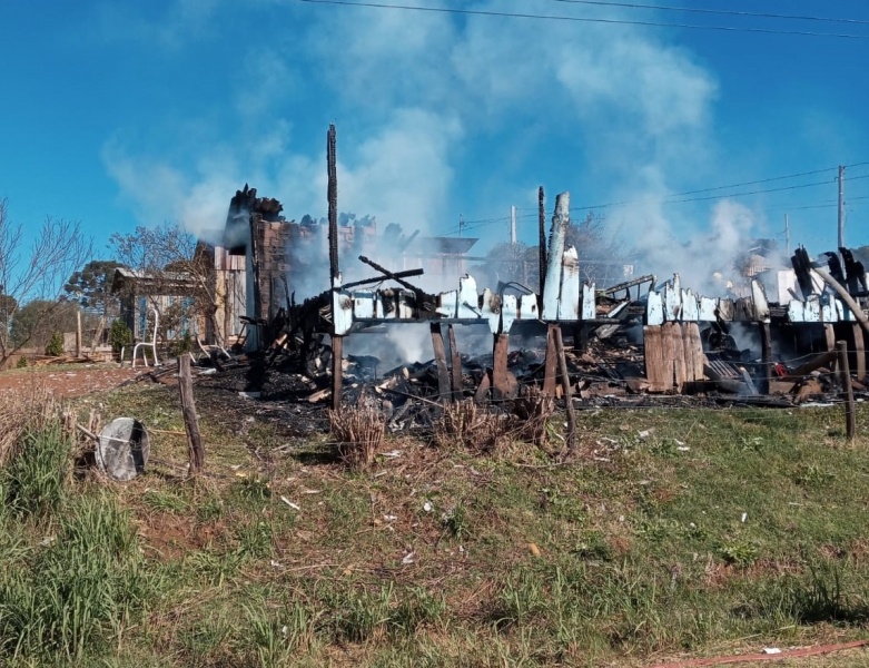 Uma casa de madeira foi consumida por um incêndio no início da tarde do domingo (31) no interior de Monte Carlo. No imóvel residia uma família de 8 pessoas, sendo dois adultos e seis crianças. Ninguém se feriu.