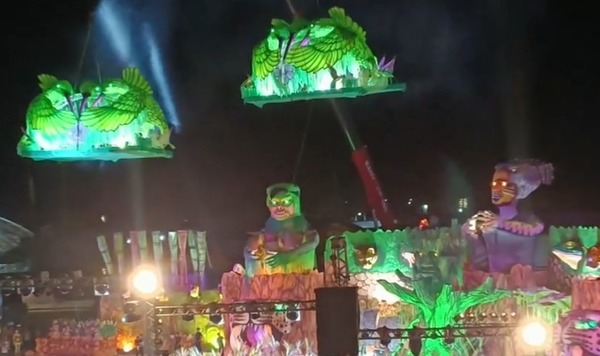 A alegoria, que era suportada por um guindaste, caiu de uma altura de 10 metros durante uma apresentação de ciranda em Manarapuru, perto de Manaus.