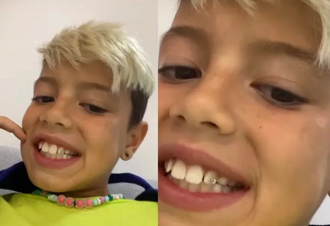 Filho de Luana Piovani e Pedro Scooby, Dom decidiu colocar um piercing no dente e compartilhou nas redes sociais, nesta terça-feira (04/10), a novidade ao mostrar a peça em um de seus dentes.