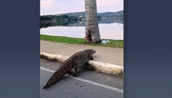 O jacaré Alfredo, que vive na lagoa centro da cidade de Lagoa Santa, na região metropolitana de Belo Horizonte, fez sucesso nas redes sociais ao ser flagrado passeando fora da água.