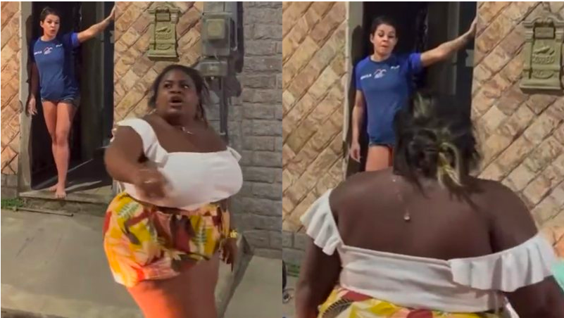 "Olha o espetáculo", ironizou a mulher, que em nenhum momento saiu da porta de sua casa. "Não é espetáculo não, não é espetáculo não. Com gente da tua laia tem que fazer isso aí, fazer passar vergonha. Agora sustenta tuas gracinhas", completou a artista.