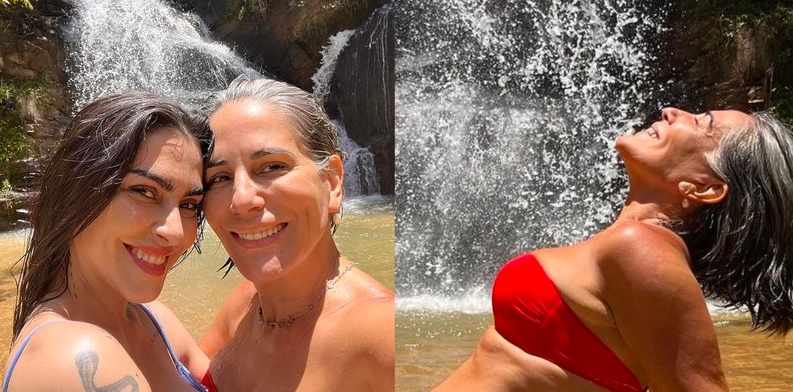 A cantora Cleo (40) compartilhou alguns cliques da família nesta terça-feira (27/12), curtindo um dia na cachoeira e chamou a atenção ao tirar uma foto fazendo uma pose igual a da mãe, a atriz Glória Pires (59).