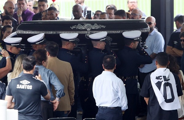 Os portões do estádio da Vila Belmiro foram fechados por volta das 9h50 e muita gente ficou para fora. Em seguida, o corpo de Pelé seguiu em cortejo em carro aberto pelas ruas de Santos até chegar ao Memorial Necrópole Ecumênica onde será sepultado.