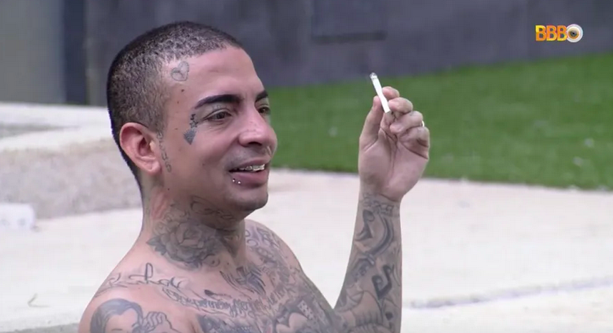 "Atenção, senhores. Nós não gostamos de fumantes e temos muitos na casa. Então, a gente vai reorganizar, porque vocês estão fumando demais", disse o Big Boss. "Fica proibido, terminantemente, a entrada de cigarro, mesmo apagado, dentro de casa. Fica proibido usar cigarro na orelhinha, porque orelha não fuma", continuou.