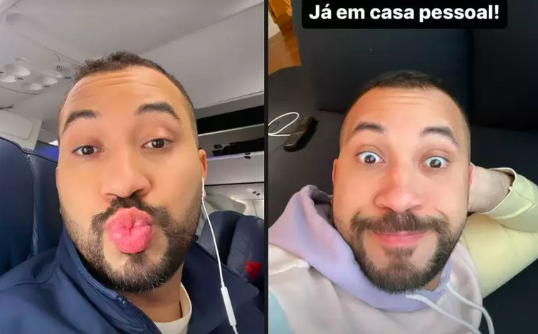 O ex-BBB detalhou que ficou um "tempão" na sala, explicando tudo para as autoridades, até que decidiram liberá-lo. "Eles pensam que todo estudante é pobre", acrescentou ao mencionar que viajou na primeira classe. "Não fui eu que paguei, glória ao senhor".