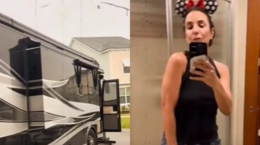 "Família pequena vocês sabem como é, né? [risos] Dessa vez a mamãe exagerou. Olha que legal, gente... de férias, com 51 cabeças, a gente tem esse motorhome, vou mostrar dentro para vocês saberem como é", iniciou ela, mostrando uma sala de jantar, cozinha, e uma suíte, com direito a cama de casal e tudo.