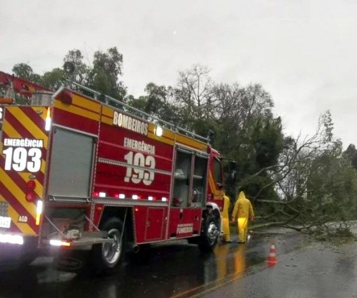 Joaçaba: 11 árvores caídas, um acidente de trânsito com vítimas, sendo uma presa em ferragens;
