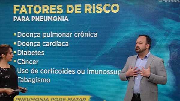 O especialista ainda destacou que fatores de risco que podem levar a uma pneumonia são ter alguma doença pulmonar crônica, doença cardíaca, diabetes, câncer, uso de de corticoides ou imunossupressores ou tabagismo.