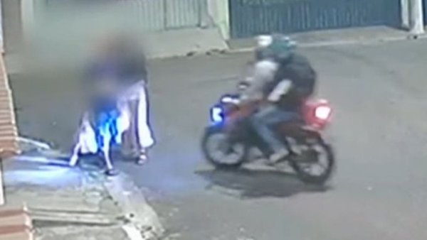 Câmeras de segurança flagraram a ação. Os bandidos chegam em uma moto e mandam as vítimas entregarem os celulares. A mulher chega a levantar as mãos se rendendo e o homem entrega o telefone, mas o bandido ainda arranca a bolsa da grávida, que tenta pedir os documentos que estão na bolsa.