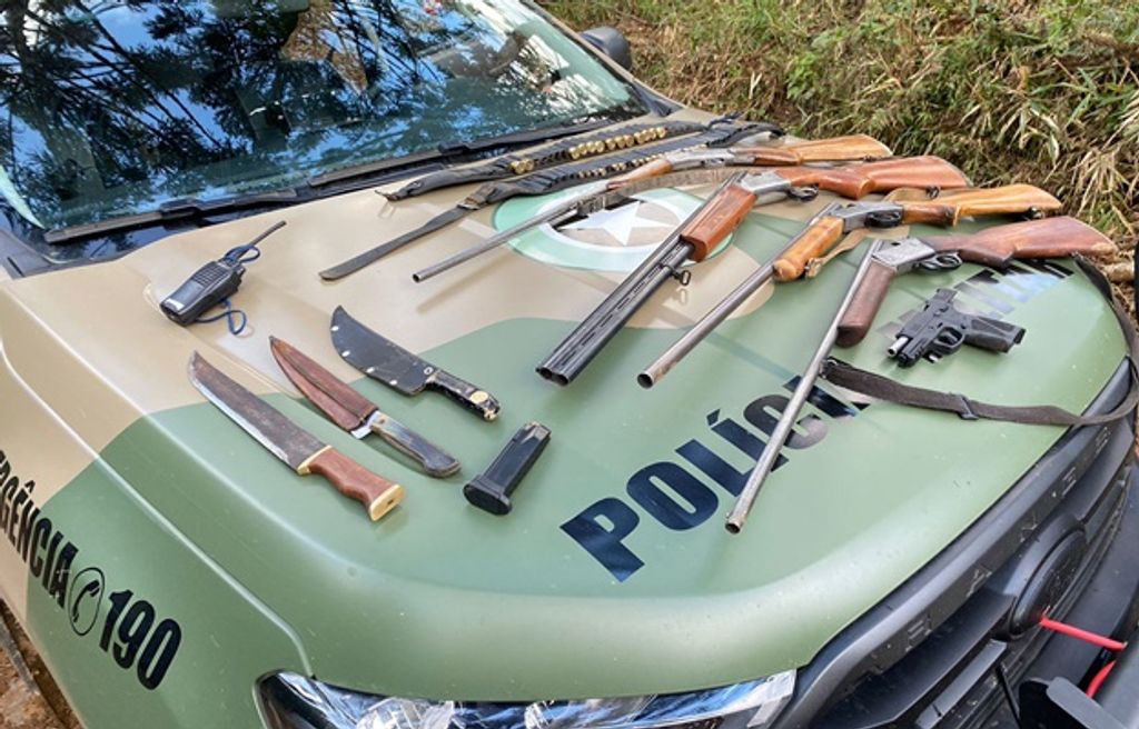 Foram apreendidas espingardas de calibre 20, 36 e 12. Policiais Militares do 15° BPM prestaram apoio no transporte dos masculinos. Por não possuírem a documentação necessária, os homens foram presos e conduzidos até a Delegacia Regional de Caçador.