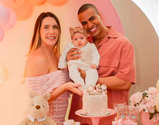Filha de Thiago Oliveira, apresentador do 'É de Casa', e Bruna Matuti completou 3 meses de vida nesta terça-feira (22/08), e ganhou uma festa de comemoração. Nas redes sociais, os pais da Ella mostraram detalhes da celebração, com uma decoração encantadora em tons de rosa e com vários ursos de pelúcia.