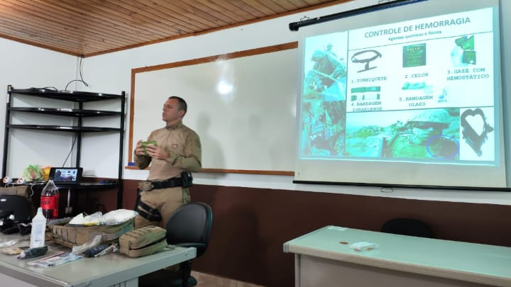 Nesta terça-feira, 29, foi realizado na sede do 3º Pelotão da 2ª Companhia do 15º Batalhão de Polícia Militar (BPM), uma instrução de Atendimento Pré-Hospitalar (APH) Tático. O conhecimento foi repassado pelo 1º sargento PM Alan Diego Pickler, do 15º Batalhão, em Caçador.