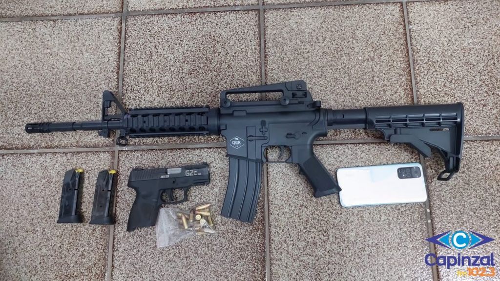 Conforme a delegada Fernanda Gehlen da Silva, uma pistola Taurus, modelo G2C, calibre 9mm, acompanhada de dois carregadores com 16 munições do mesmo calibre, foi encontrada em um compartimento secreto no porta-luvas do veículo utilizado pelo investigado. Também foi encontrado um fuzil M4A1 de Airsoft (simulacro).