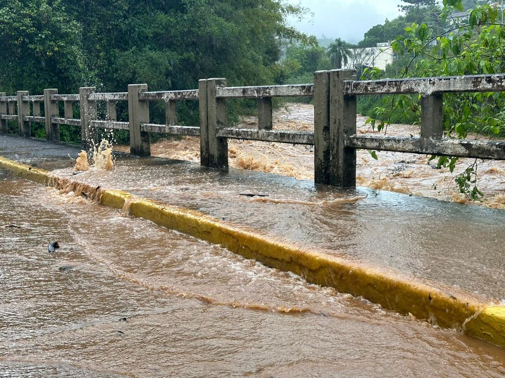A Ponte sobre o Rio do Tigre, que atravessa a cidade de Joaçaba, ao lado do Parque Municipal, foi interditada no fim da manhã desta quarta-feira, dia 04. O volume do rio subiu rapidamente, saiu do seu leito, invadiu a pista e coloca usuários da via em risco. Há muito tempo não havia uma quantidade tão grande de água que causasse o bloqueio da rua e da ponte. Não há previsão de liberação. As equipes da prefeitura e Defesa Civil estão no local monitorando a situação.