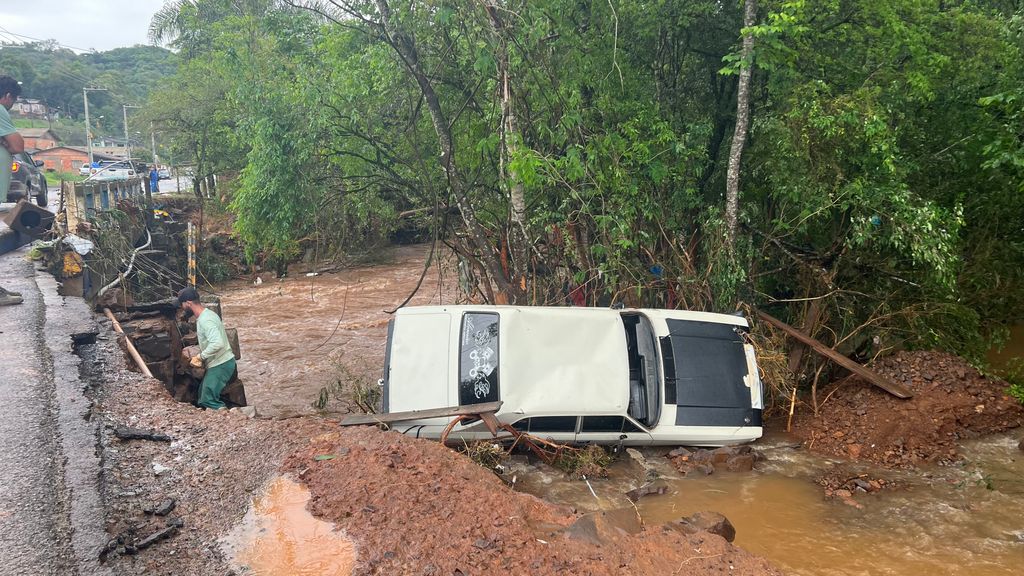 A situação foi registrada na mesma rua em que um supermercado, outros estabelecimentos comerciais e várias casas foram atingidos pela enchente no começo da manhã. A força da água surpreendeu as pessoas, que pouco puderam salvar e tiveram grandes perdas.