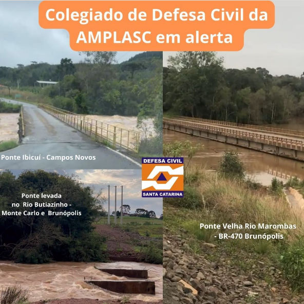 Na região da AMPLASC até o momento três municípios decretaram Situação de Emergência pelas ocorrência de chuvas intensas: Brunópolis, Monte Carlo e Vargem, sendo que os prejuízos mais significativos foram confirmados no primeiro município citado.