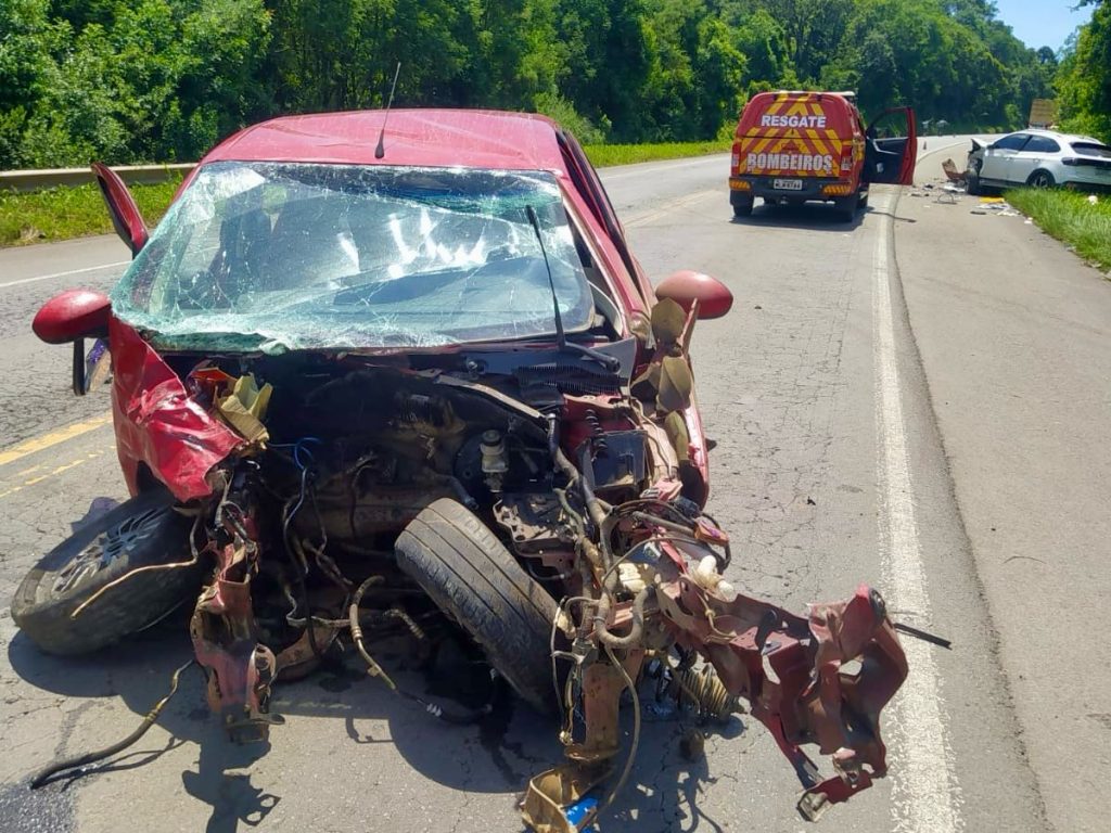 Colisão fronto-lateral na SC-135, próximo a Vinícola Casal Piccoli, envolvendo um Volkswagen Gol, vermelho, placa Mercosul, e uma Nissan Frontier, cinza, placa Mercosul. O Gol era conduzido por um homem de 21 anos que apresentava suspeita de fratura no pé esquerdo e escoriações na coxa esquerda e na região posterior do tórax. O veículo Frontier era conduzido por uma mulher de 35 anos, tendo como carona uma menina de 5 anos. O condutor do gol foi conduzido ao Hospital Salvatoriano Divino Salvador pelo ASU-437. Após o atendimento o local ficou aos cuidados da Polícia Militar, de Videira-SC, que realizou a sinalização e a segurança da cena durante toda a ocorrência.
