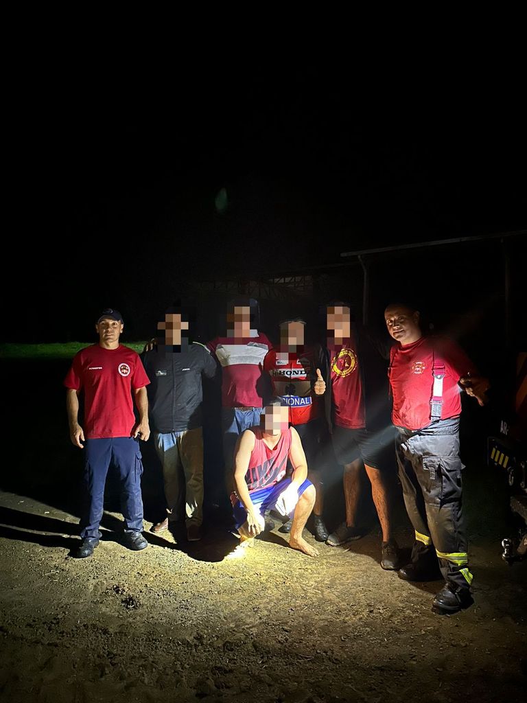 Após encontrar o homem os bombeiros retornam auxiliando a vítima, deixando depois aos cuidados de seus familiares.