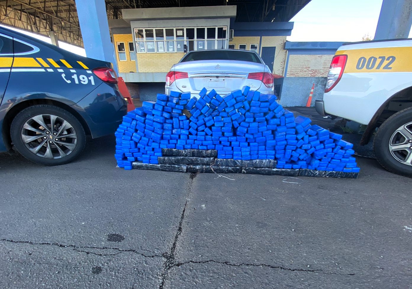 As duas forças de segurança trocaram informações e localizaram o veículo suspeito, um automóvel sedan prata. A droga estava no porta-malas e banco traseiro.
