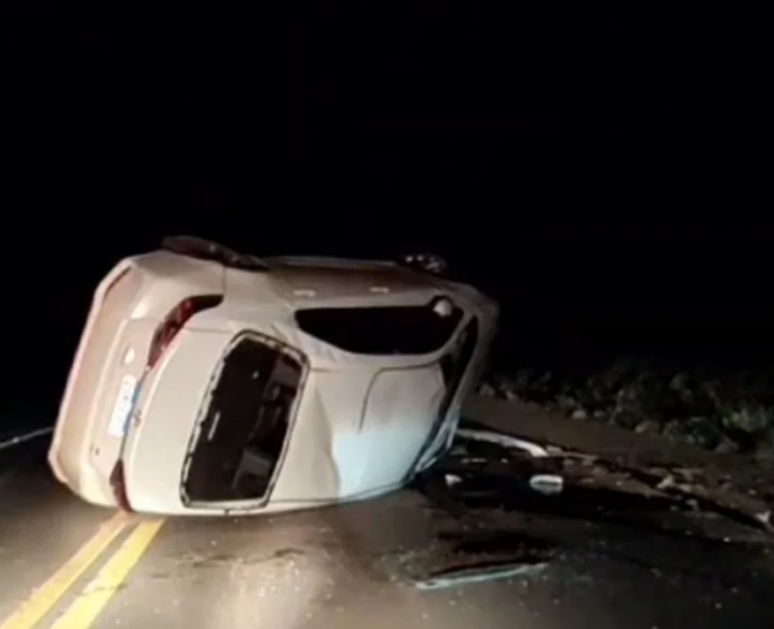 Um Toyota/Corolla, com placas de Patos/Paraíba, capotou na noite de quinta-feira (4) após o motorista perder o controle da direção na Curva do Passat, em Herval d´Oeste.