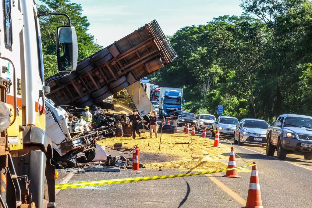 O acidente envolveu uma carreta bitrem, um caminhão que transportava produtos alimentícios, uma carreta carregada com porcos e um carro Chevrolet Onix. Com o impacto da colisão, um dos veículos tombou para área de vegetação da rodovia, enquanto a cabine de outro ficou completamente destruída.