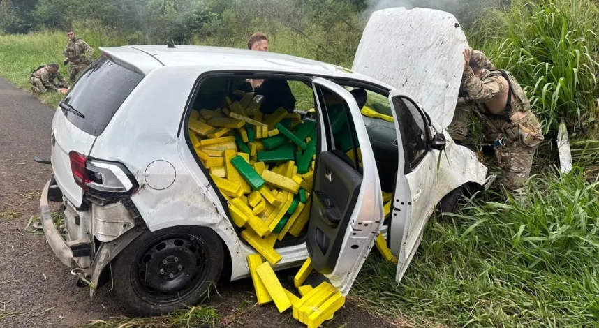 Por volta das 11h da manhã, a PRF abordou o carro na rodovia BR-277, na cidade de Laranjeiras do Sul, e passou a perseguir um carro que carregava mais de meia tonelada de maconha.