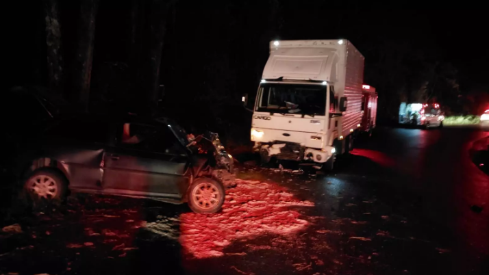 Na noite de terça-feira (16), uma colisão entre carro e caminhão deixou duas pessoas presas nas ferragens em Seara. O acidente ocorreu na SC-283, Km 46, na Linha Ipiranga. Segundo o Corpo de Bombeiros Militar, as vítimas eram motorista e passageira de um volkswagen Gol.