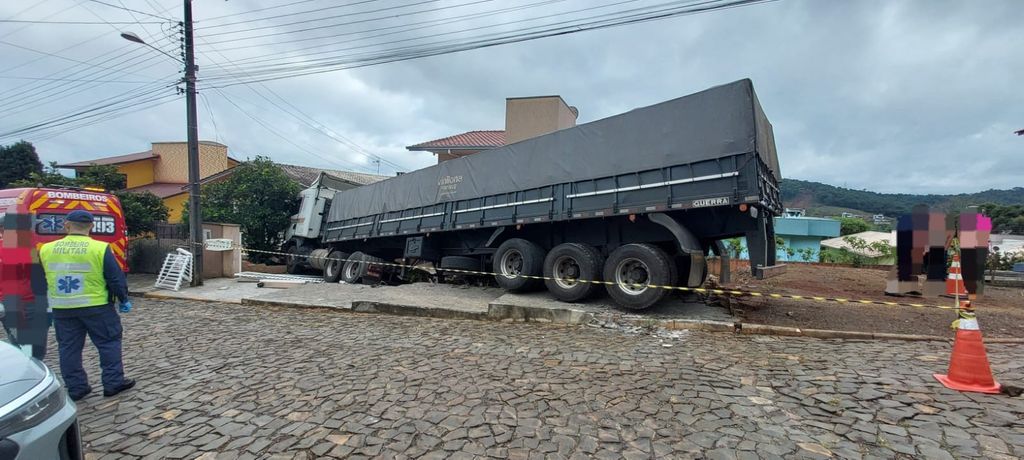 O veículo, também com placas de Videira, saiu da pista e colidiu na muro, no portão e em um poste de energia elétrica. No local, os bombeiros encontraram o motorista fora do caminhão e muito nervoso. Ele se recusou a passar informações para o Corpo de Bombeiros, além de recusar o encaminhamento ao hospital e seus familiares assinaram o termo de recusa.