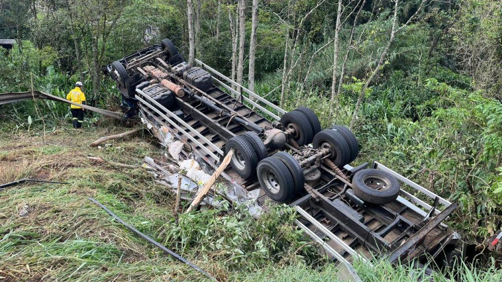Um acidente de trânsito foi registrado próximo à ponte sobre o rio Caçador, em linha Bernardi, junto ao Contorno Viário de Seara, no Oeste catarinense. Foi o tombamento de um caminhão com doações no começo da tarde desta sexta-feira, 10 de maio.
