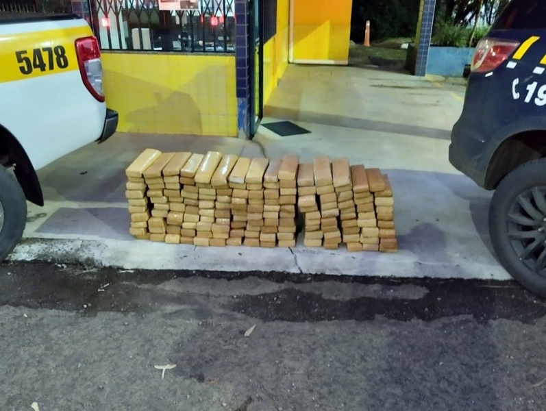 Jovem é preso após ser flagrado transportando 200 kg de maconha.