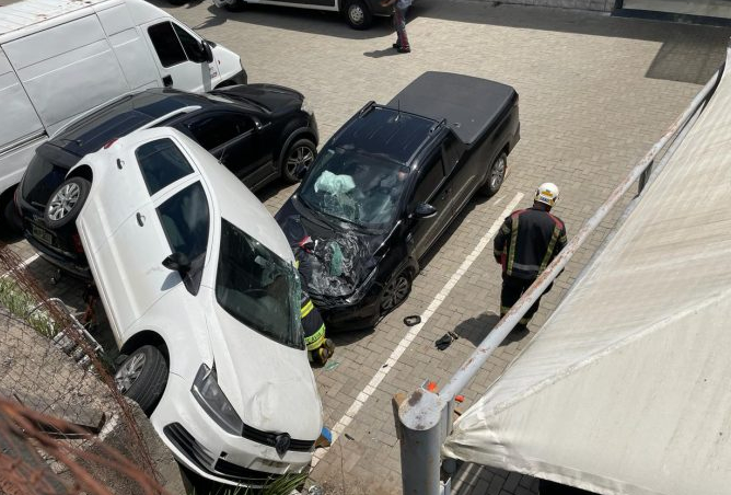 Mulher fica ferida após despencar com carro dentro de pátio de conces...