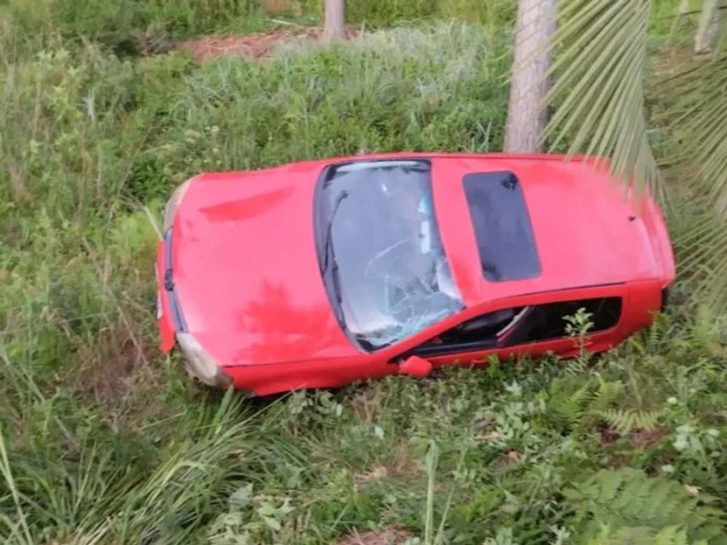 Motorista cochila ao volante e veículo sai da pista e capota.