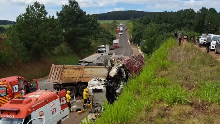 Acidente entre caminhões deixa duas pessoas mortas na BR-282.