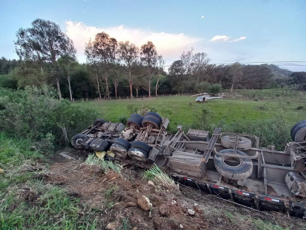 Motorista morre ao capotar caminhão carregado com madeira na SC-114