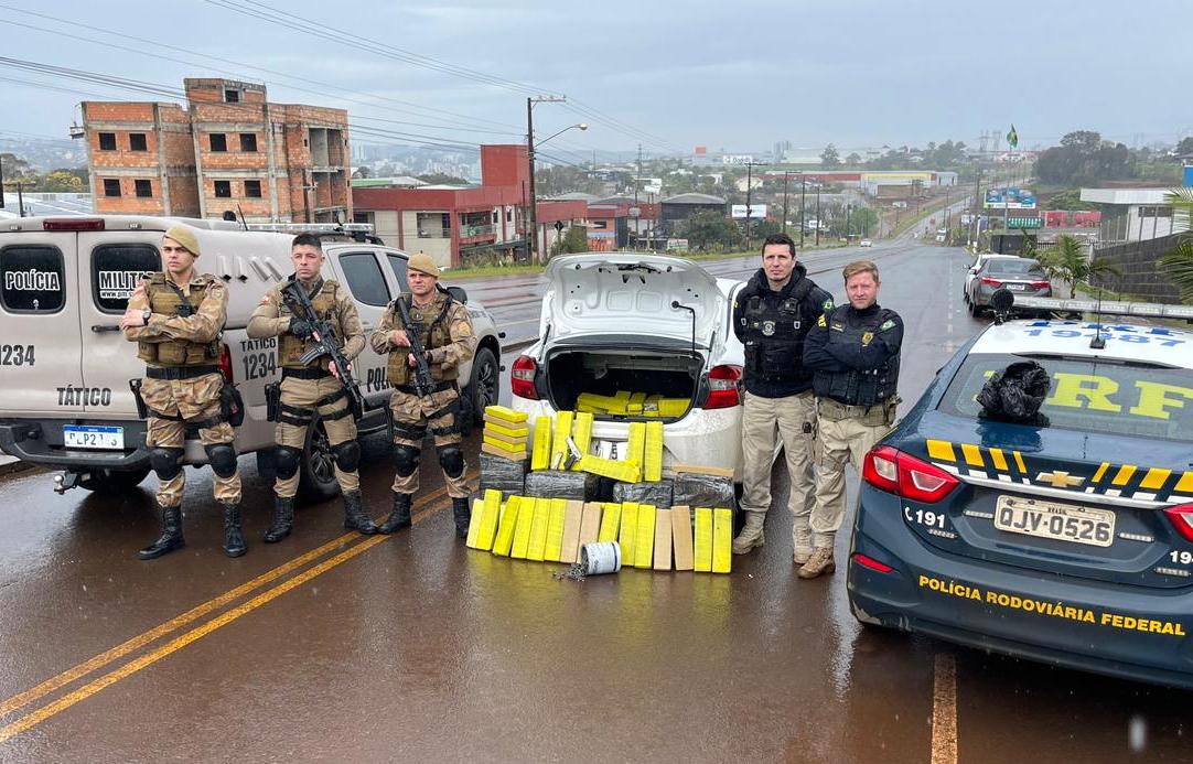 Ação conjunta PRF e PM apreende 210 kg de maconha, pistola, munições ...