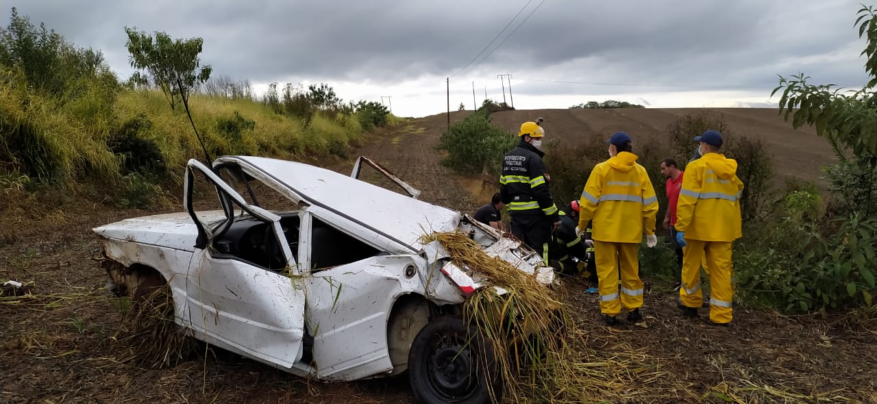 Carro fica destruído em capotamento entre Campos Novos e Zortéa