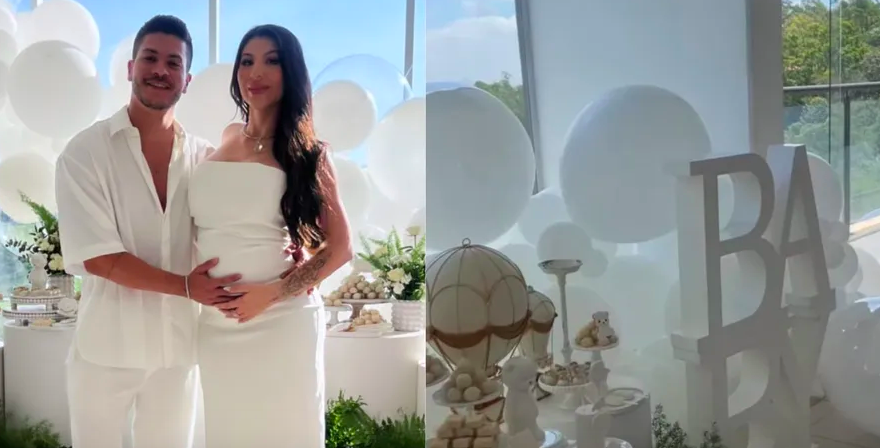 Arthur Aguiar e Jheny Santucci descobrem sexo do bebê em chá revelação