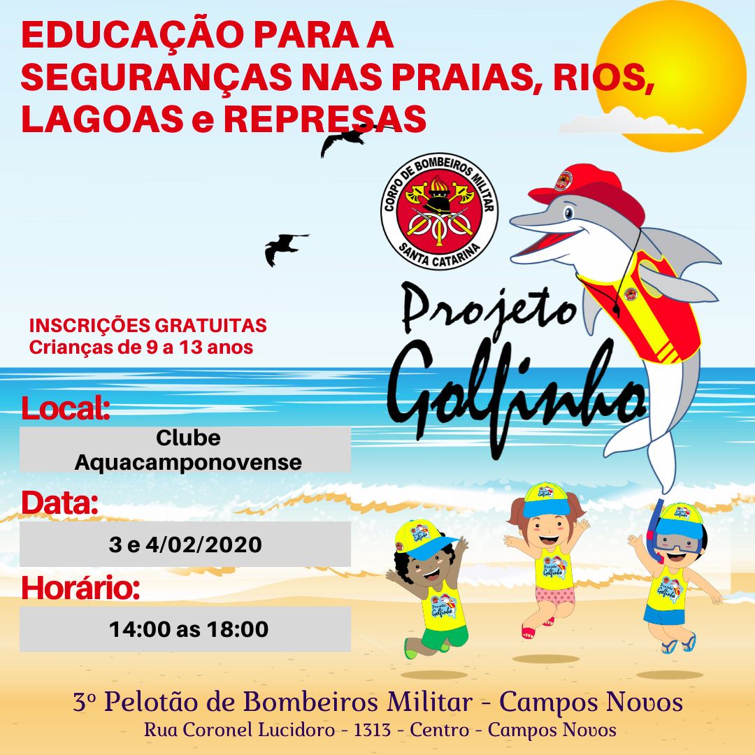 de 2020, no Clube Aqua Camponovense, entre as 14h e 18h, o “Projeto Golfinho”, que