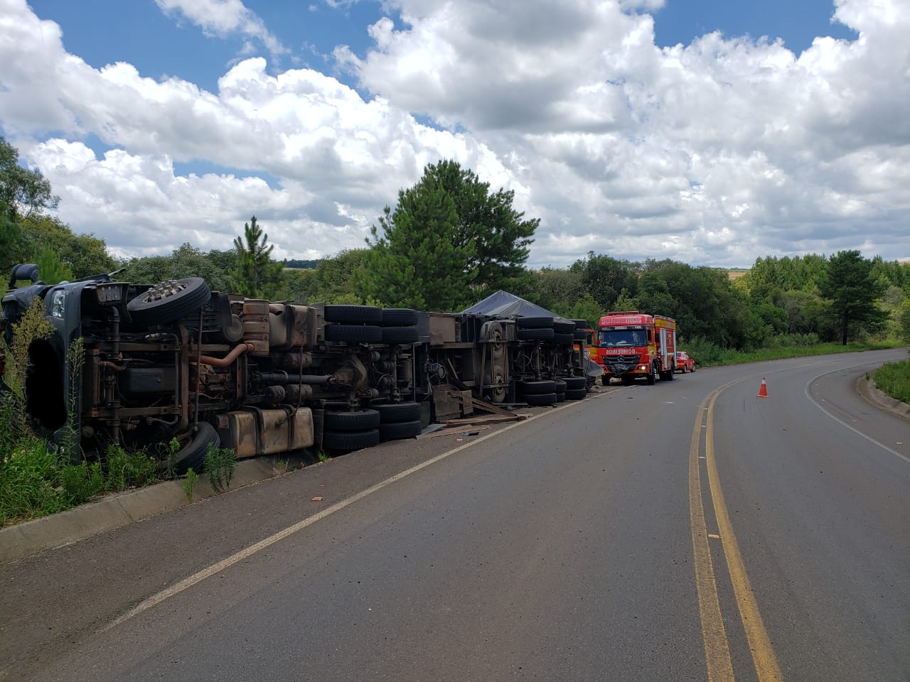 O acidente foi registrado no final da manhã desta sexta-feira (18), na SC 135, próximo ao distrito de Bella Vista, em Campos Novos. Foi um tombamento de uma carreta Iveco Stralis 600, com placas de Videira/SC, carregada com embalagens para cimento.