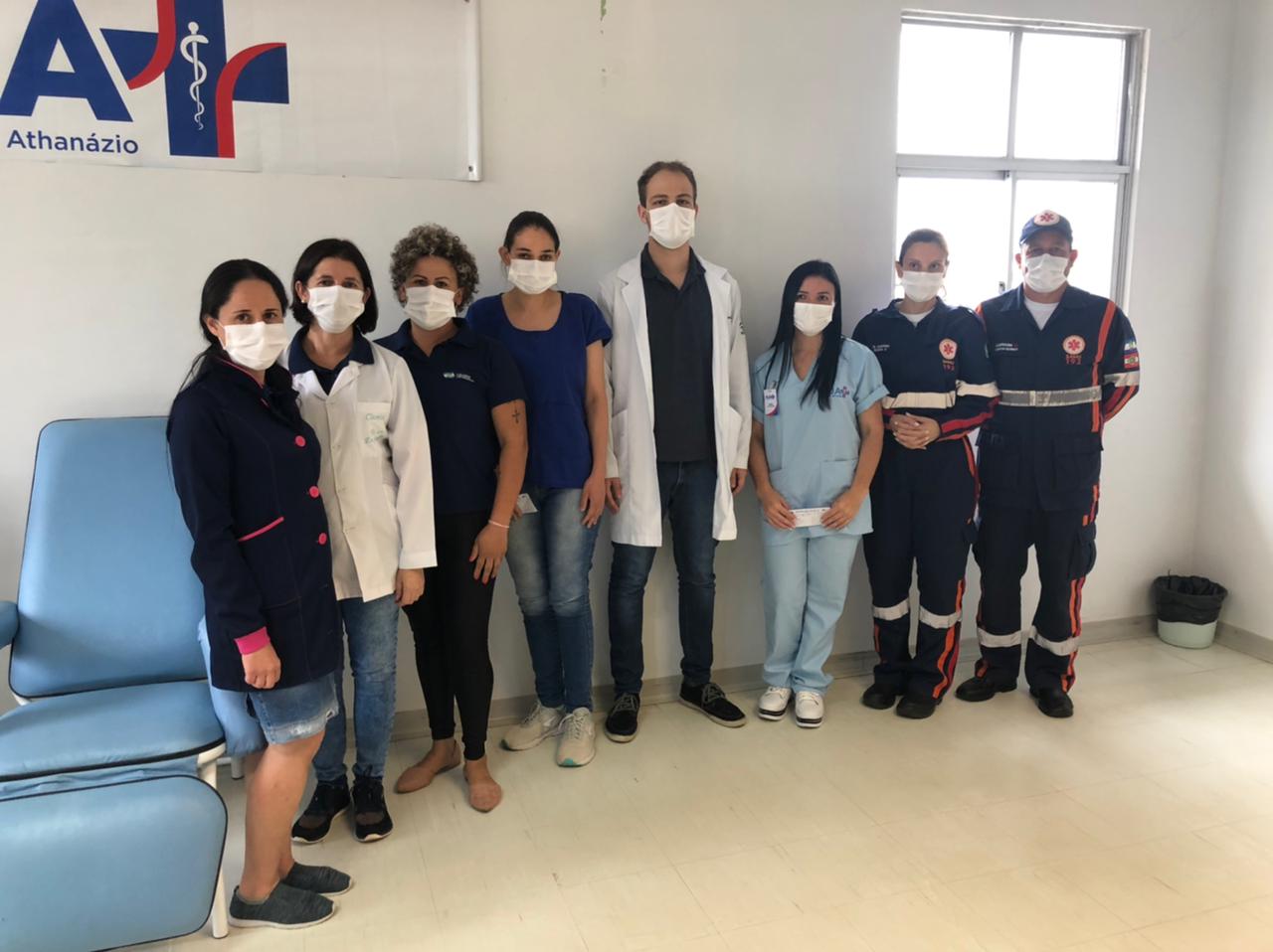 As primeiras pessoas a participarem desse momento foram: Sandra Ferreira, Matheus Brushi dos Santos, Jaqueline Lopes Thibes Nunes, Emerson Luiz Carvalho, Rosângela Fátima Alves de Sá e Elizângela Cristina dos Santos, e também as vacinadoras Cleonice dos Passos e Tania Trevizan.