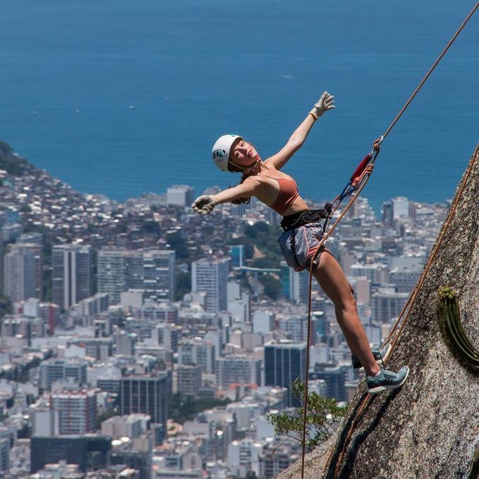 "Uma paixão minha que poucos sabem: rapel. Me me sinto livre como uma borboleta. Você teria coragem? Me conta aqui", escreveu ela, ao legendar o post.